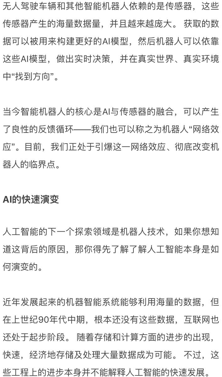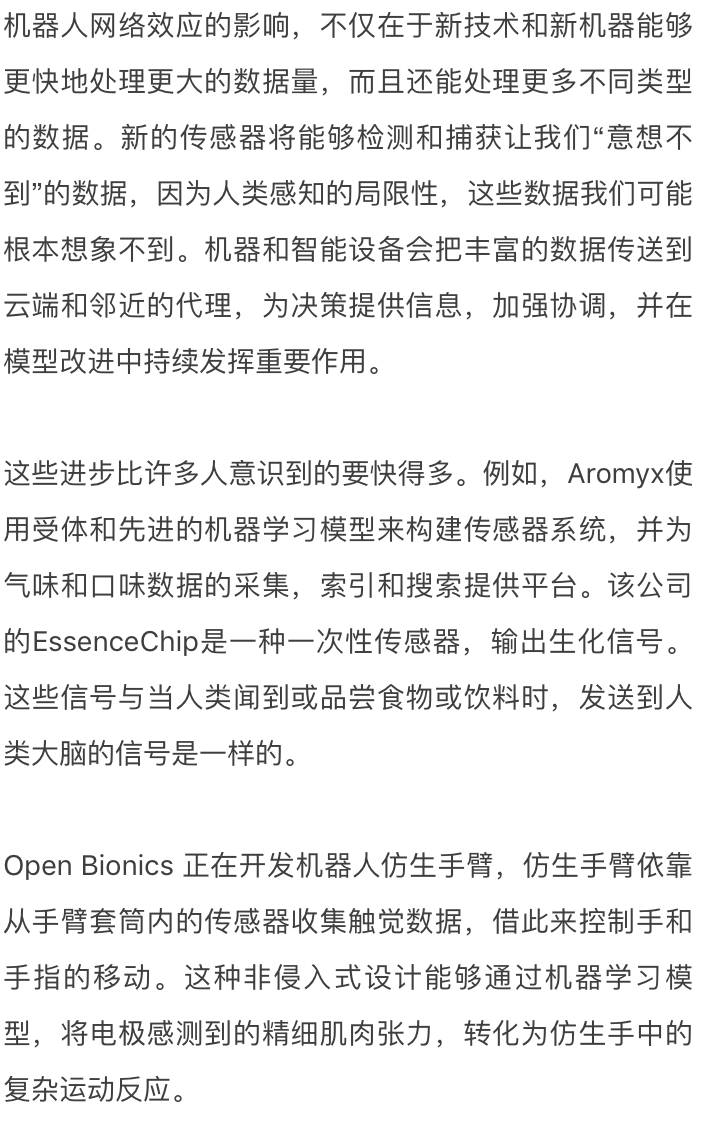 所有这些来自传感器的数据,意味着我们正处于机器人网络效应的临界点,这个转变将对人工智能,机器人及其各种应用产生巨大影响。
