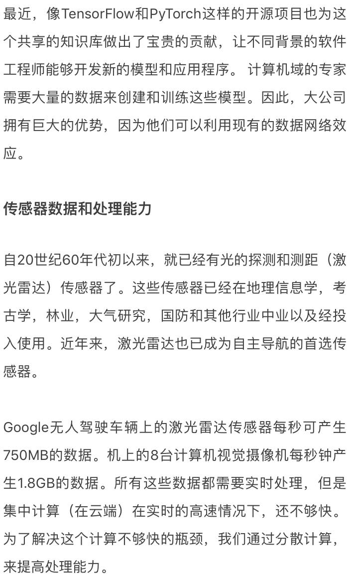 现在我们都对AI很熟悉了,也知道算法的完善离不开海量的数据。数据量越大,算法给出的结果可能就越精准,越“如人意”。人对世界的感知,很大一部分是基于我们的感官获取的“数据”。机器人和目前很火的无人驾驶依靠的则是来自传感器的数据。随着传感器获取和处理的数据量越来越大,智能机器人的发展也将到达一个“临界点”。