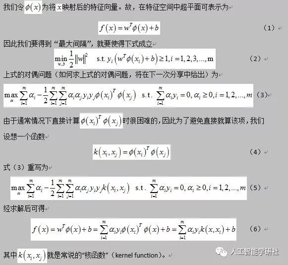 在现实任务中,原始样本空间中可能不存在这样可以将样本正确分为两类的超平面,但是我们知道如果原始空间的维数是有限的,也就是说属性数是有限的,则一定存在一个高维特征空间能够将样本划分。