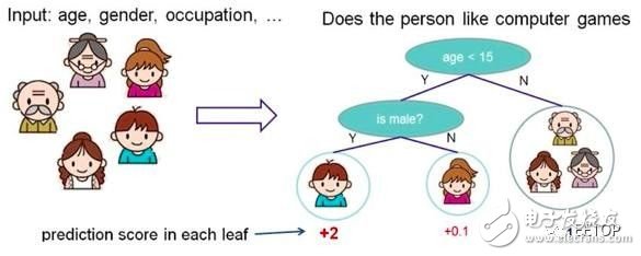 根据一些 feature 进行分类,每个节点提一个问题,通过判断,将数据分为两类,再继续提问。这些问题是根据已有数据学习出来的,再投入新数据的时候,就可以根据这棵树上的问题,将数据划分到合适的叶子上。
