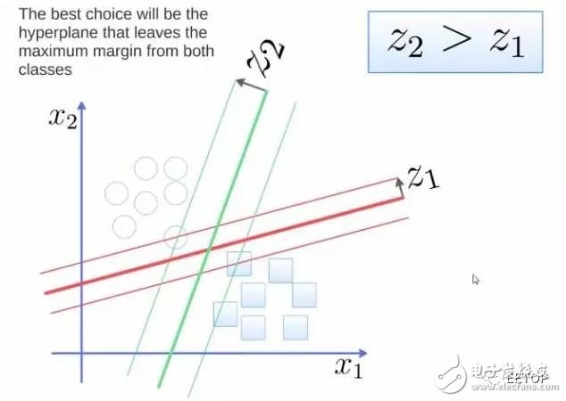 SVM是二进制分类算法。给定N维坐标下两种类型的点,SVM生成(N-1)维的超平面来将这些点分成两组。假设你在平面上有两种类型的可以线性分离的点,SVM将找到一条直线,将这些点分成两种类型,并且这条直线尽可能远离所有这些点。