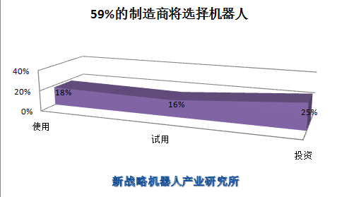未来3年内,59%的制造商将使用(18%)、试用(16%)或计划投资(25%)先进机器人技术。制造商优先将他们的技术投资放在移动系统(31%)、大数据和物联网(均为30%)上。根据对所有新技术的分析,49%的制造商认为先进机器人技术对降低其运营成本和更有效利用所拥有资本上具有最大的影响力。