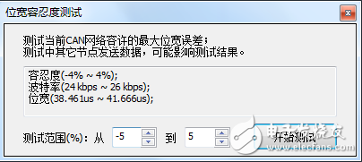 位宽容忍度测试:采用CANScope对当前波特率下CAN卡进行位宽容忍度测试,测试其对波特率的容忍度情况,测试结果为24kbps~26kbps,容忍度情况较好;