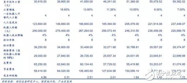 从机器人的成本回收期看,会。根据国家统计局的数据,我国制造业城镇单位就业人员的年平均工资从2010年都30916万元增长到2014年的51369万元,年均增速达到13%。根据中国产业信息网的资料,工业机器人的成本逐年递减4%。以165KG的六轴机器人为例,其回收周期将由2010年4.96年下降到2016年1.22年。随着人力成本的上升、老龄化的加剧,我国数量庞大、低成本劳动力优势在逐渐丧失,基础性工作招人越来越难。工业机器人成本的下降,机器人的投资回收期还将进一步缩短,将有助于机器人逐步实现劳动力替代。