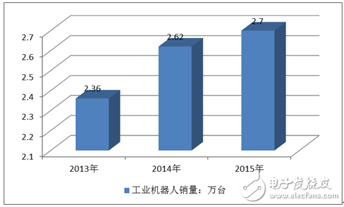 2013—2015年美国工业机器人年销量变化情况