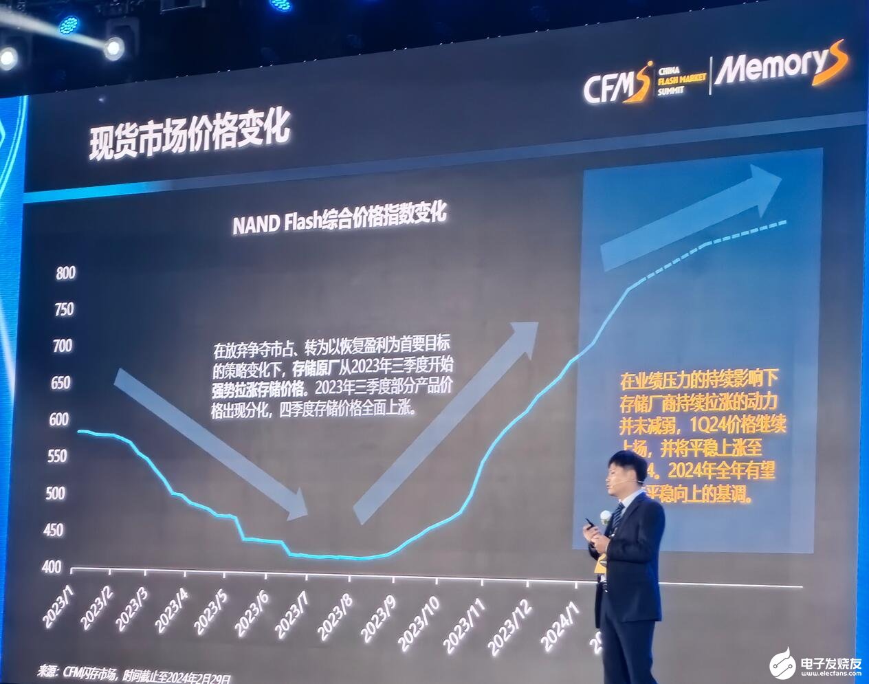 3月20日,2024年中国闪存市场峰会CFMS在深圳前海华侨城JW万豪酒店盛大召开,三星、SK海力士、美光、铠侠、长江存储等内存大厂高管纷纷发表重磅演讲,深圳市闪存市场资讯有限公司总经理邰炜先生带来了《存储周期 激发潜能》的主题演讲,分享2023年存储市场发展趋势和2024年存储市场价格和主要应用市场产品走向。
