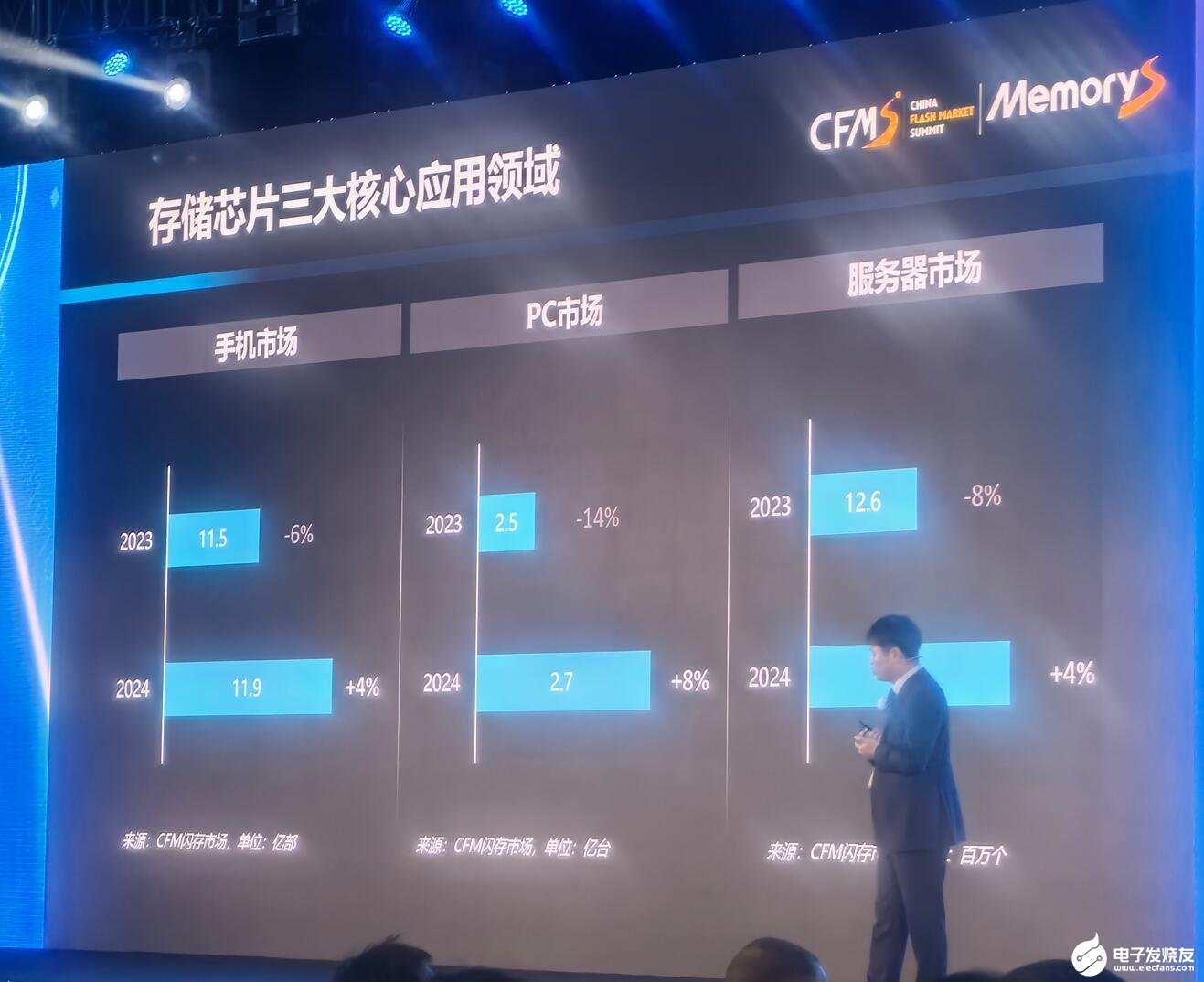CFM闪存市场预测,2024年手机存储需求同比去年增长4%,PC市场存储需求同比增长8%,服务器市场存储需求同比增长4%。