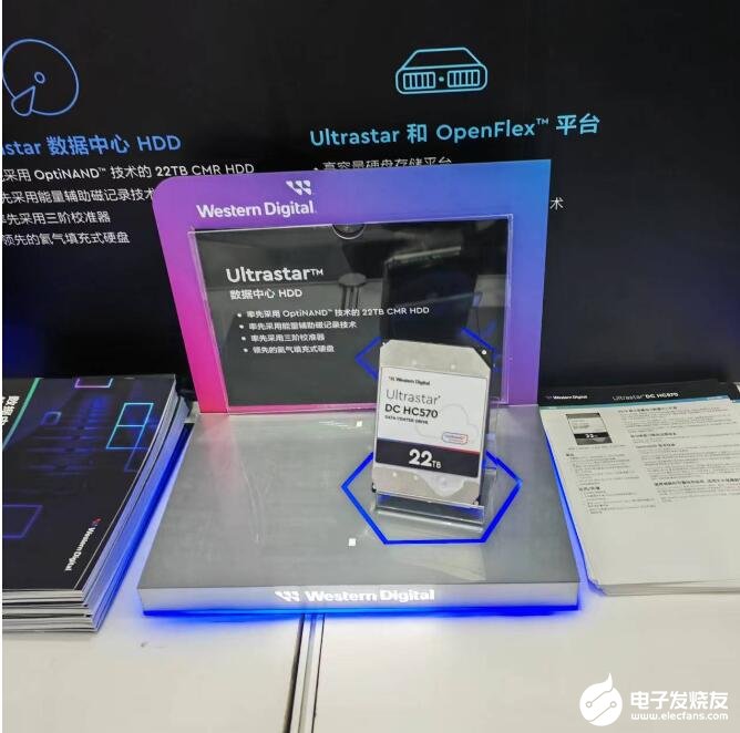 在展会现场,西部数据展出的22TB Ultrastar DC HC570 CMR HDD,这款产品是将HDD的存储容量、性能和数据弹性提升至新的高度,在成熟的单碟2.2TB的氦气封装技术上实现了10碟更高的面密度,以更高的容量点和更具优势的性能,赋能云服务提供商和企业级客户实现密度提升和存储架构的创新,应对来自云端的多样化挑战。