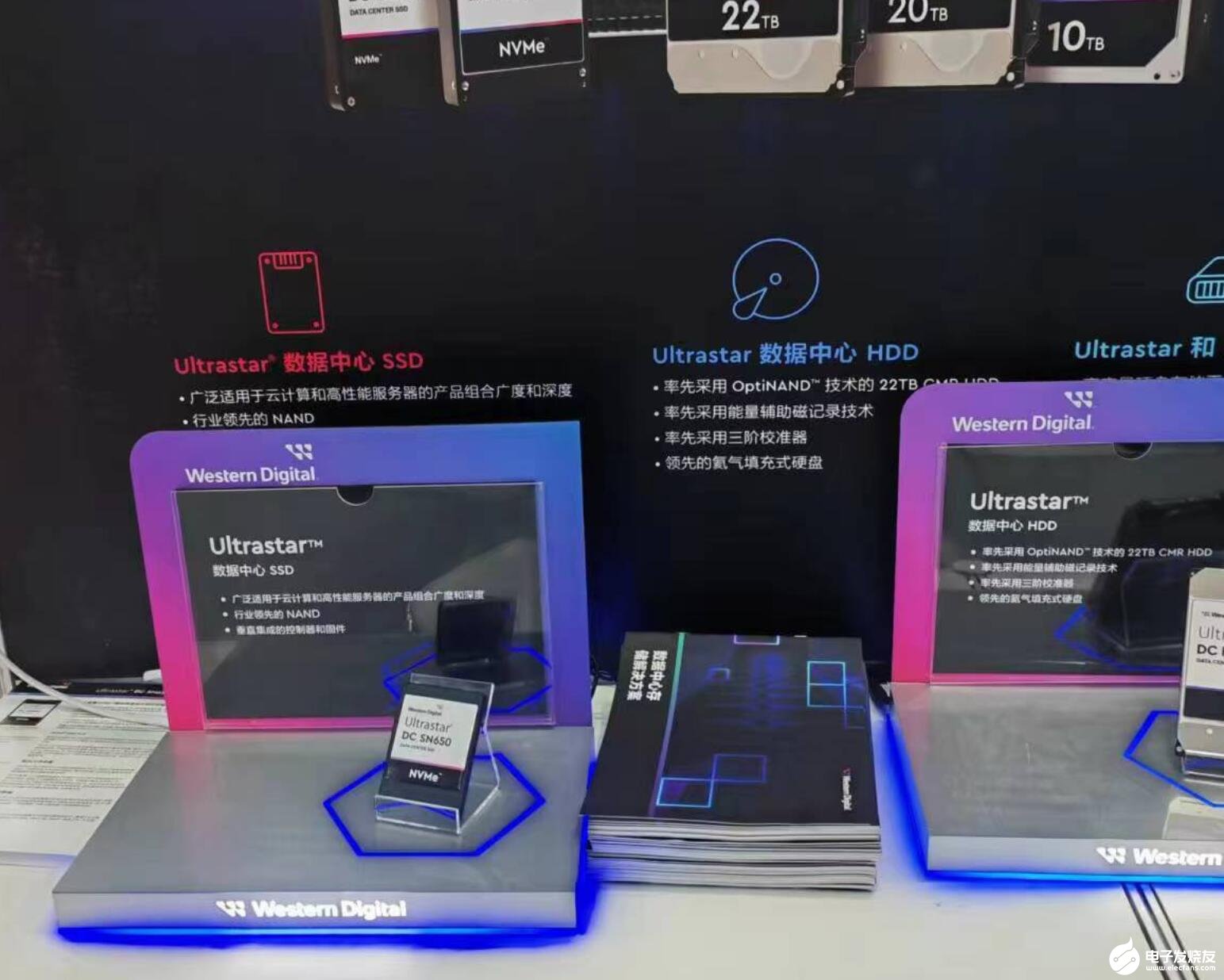 这次展会还展出了数据中心SSD硬盘。Ultrastar DC SN650 NVMe SSD是针对企业级数据中心推出的SSD。它可提供最高达15.36TB的容量,采用BiCS 5 3D TLC NAND和PCle 4.0接口,通过增加单位SSD的虚拟化主机数量,以及整合更大的数据集来提高存储资源利用率,该产品可用于大数据分析和AI/ML的数据集,还可通过采用Ultrastar DC SN650 NVMe SSD来缩短时延并提高数据吞吐量。