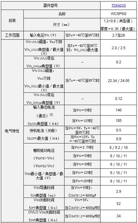 中国上海,2022年2月9日——东芝电子元件及存储装置株式会社(“东芝”)今日宣布,推出其面向20V电源线路的新款“TCK42xG系列”MOSFET栅极驱动IC中的首款产品---“TCK421G”。该系列器件专门用于控制外部N沟道MOSFET的栅极电压(基于输入电压),同时具备过压锁定功能。新产品于今日开始支持批量出货。