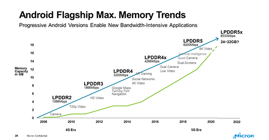 我们认为LPDDR5也会被中档5G手机采用,手机平台和生态链的路线图已经显示了这种趋势。