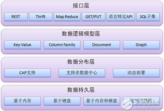 ·逻辑数据模型:面向键值对的(Voldemort,Dynomite等),面向Column Family的(BigTable,HBase,Hypertable等),面向文档的(Couch DB,MongoDB等),面向图的(Neo4j,Infogrid等)