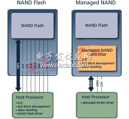 当然,eMMC取代MCP的最大驱动力还是来自于手机基带/AP厂商们的支持。“由于闪存需求变化快,以前针对每代闪存接口,基带/AP厂商都要重新设计,这给他们带来很大的麻烦。现在,采用eMMC后,他们再也不用担心这些了,这些都交给了eMMC中的控制器来完成。”***闪存控制芯片厂商SMI公司副总经理段喜亭解释道,“并且,还有一个非常重要的原因是,随着用户对纠错能力的不断提升,如果在基带内完成ECC,会是一个很重的负担。目前基带内最高的纠错能力也就是24bit,而我们的控制器可以做到70bit。”他补充道,“所以,目前几乎所有主流的基带厂商,包括高通、博通、STE、Marvell、MTK等等都开始支持eMMC了。”