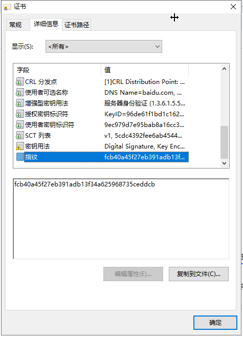 我们的应用服务器如果想要使用 SSL 的话,需要通过权威认证机构来签发CA证书,我们将服务器生成的公钥和站点相关信息发送给CA签发机构,再由CA签发机构通过服务器发送的相关信息用CA签发机构进行加签,由此得到我们应用服务器的证书,证书会对应的生成证书内容的签名,并将该签名使用CA签发机构的私钥进行加密得到证书指纹,并且与上级证书生成关系链。这里我们把百度的证书下载下来看看: