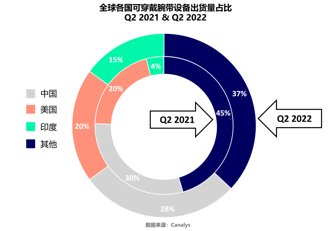Canalys数据显示,2022年Q2全球可穿戴腕带的出货量达到4170万台,其中中国市场销量全球第一。