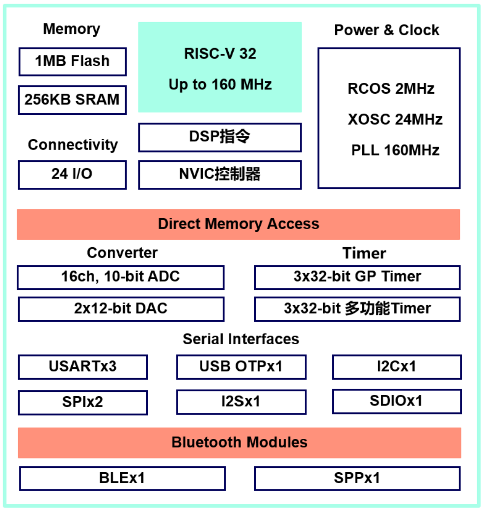 ② 工作主频160 MHz、1MB Flash 、256KB S