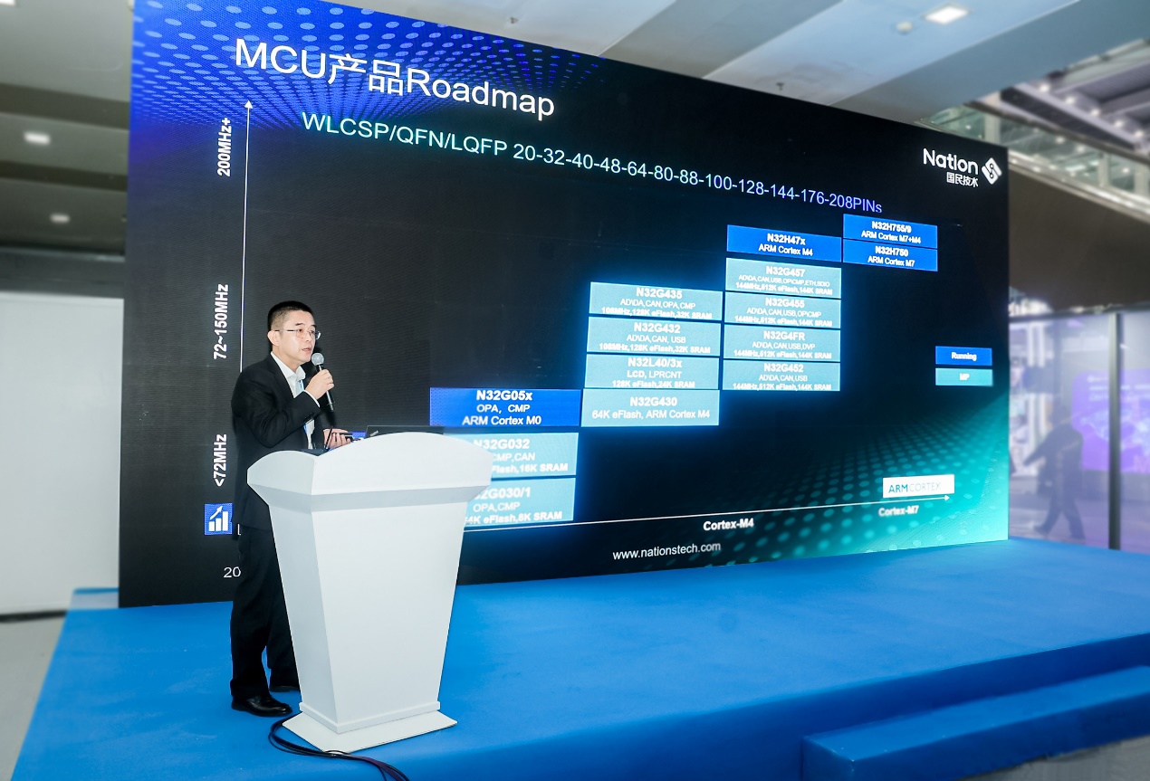 论坛上,国民技术市场总监刘亚明做了题为“创新引领未来,国民技术N32系列通用MCU产品与技术应用分享”的主题演讲,向与会者全面介绍了国民技术通用MCU产品战略、发展路线图、优势技术特点和典型应用案例。