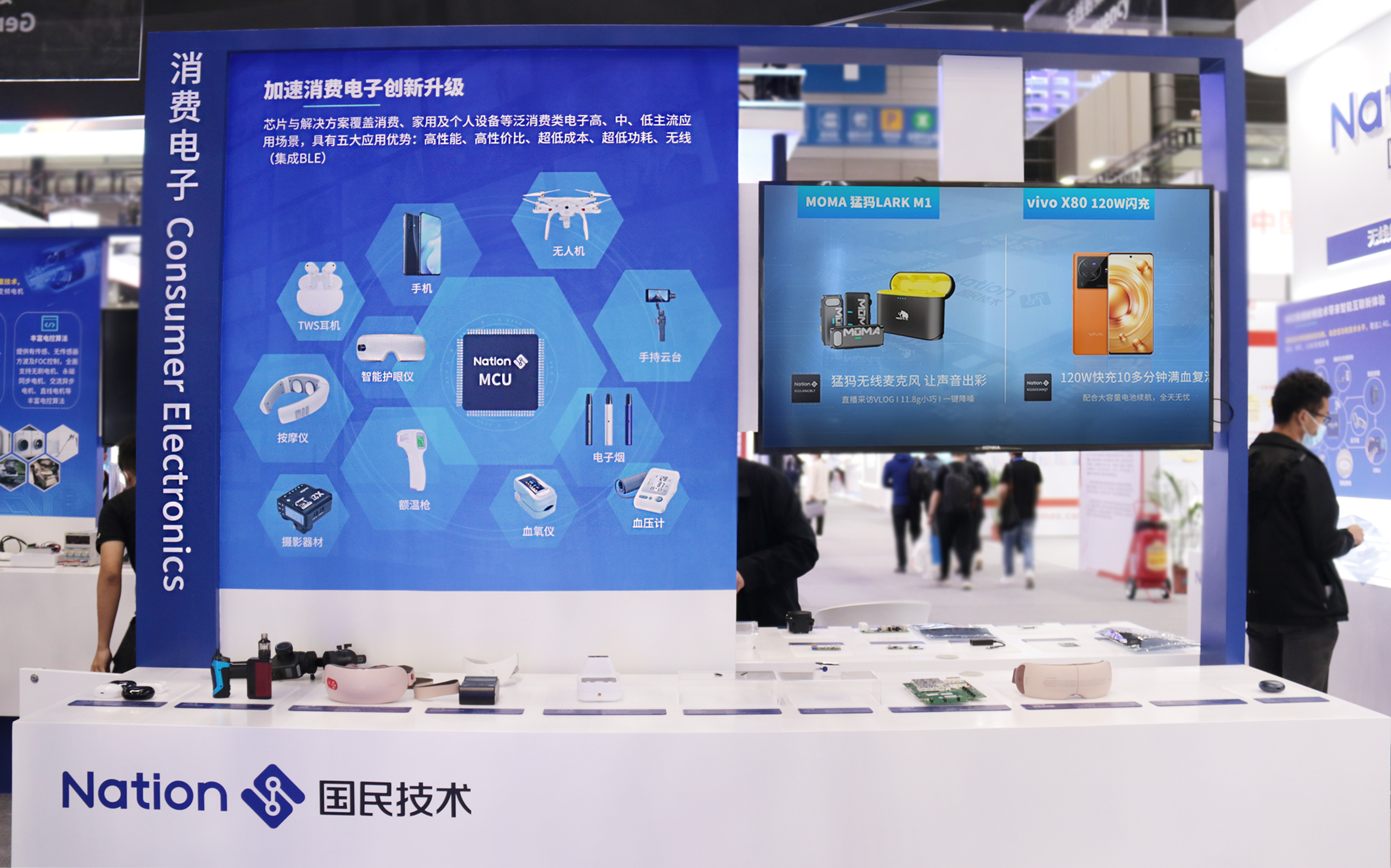 本次展会,国民技术带来通用MCU、安全芯片、无线射频等业务领域产品技术与应用,设立11个主题展示区域,100余件精选展品,全面覆盖和全景展示了国民技术在