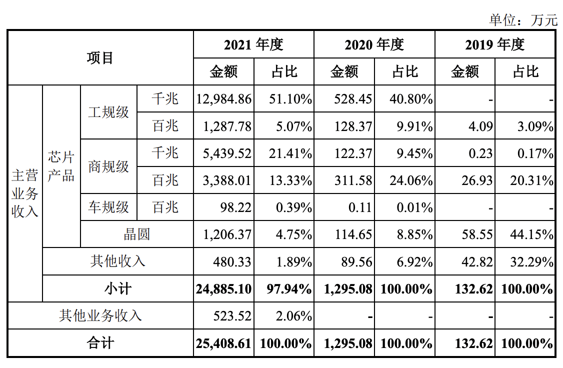目前裕太微尚未盈利,2019年至2021年内的净利润分别为-2748.99万、-4037.71万和-46.25万。不过在2021年度,裕太微的营业收入获得了大幅增长,相较2020度年翻了近20倍,达到了25408万元,报告期内的年复合增长率超过1200%。但在加倍研发成本、与管理成本的前提下,2021年年度依然是亏损的,不过相较2020年4000多万的亏损已经有了长足的改善,在技术创新和降本增效下,有望在今年实现净利润扭亏。