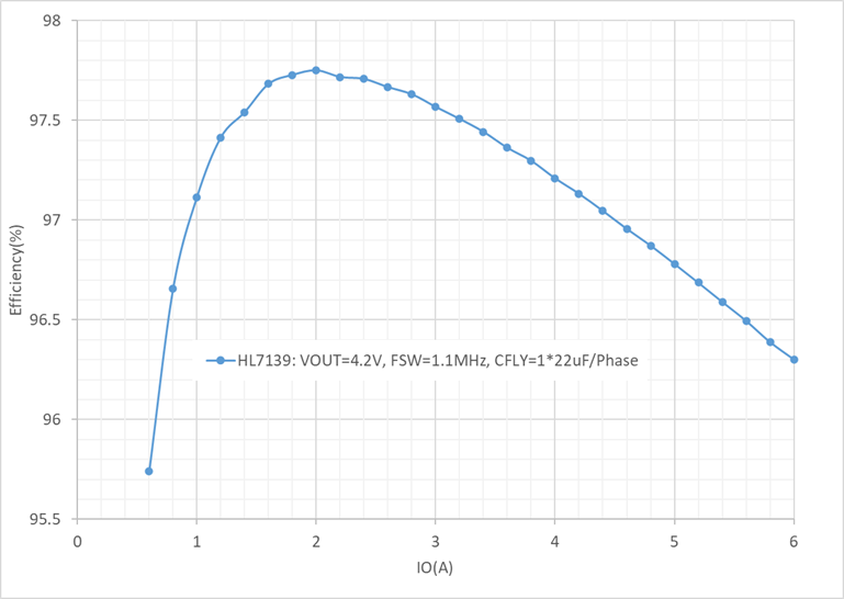 图4HL7139使用一个22uF CFLY电容的效率曲线图