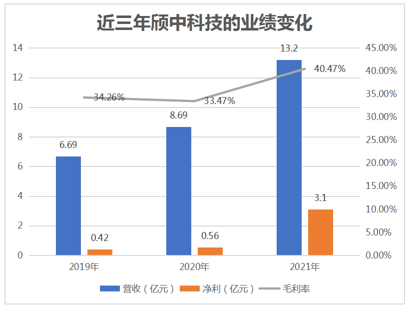 在营收方面,2019年-2021年实现的收入分别是6.69亿元、8.69亿元、13.2亿元。营收在2021年加快增长,同比增长51.90%。