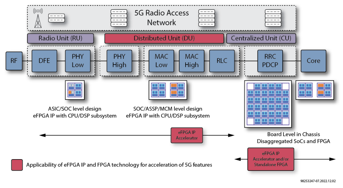 图8:使用eFPGA来满足ASIC/SoC中的5G Advanced功能:RU、DU(和CU)实现