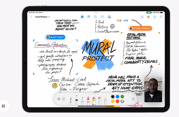除此之外,iPad OS 16在生产力上也进一步提升,包括新增参考模式能让配备了12.9英寸Liquid视网膜XDR显示屏的iPad Pro的色彩表现能够在审核、调色和合成等对色彩精准度和图像质量要求很高的工作流程中达到要求。另外苹果还带来了一款协作类新App,通过灵活的画布让用户能在一处进行查看、分享和协作,无需担心布局和页面大小,在添加内容或进行编辑时可以看到他人的修改,同时可以实时进行FaceTime交流,实属居家办公神器。