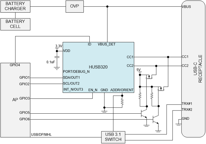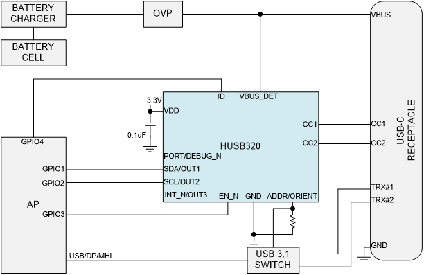 另外,通过外围电路为HUSB320增加VCONN电源,redriver获得供电后放大信号,即可适配USB3.1以上的高速线缆,可替代TUSB321与TUSB322,适用于主机、设备、双角色端口应用、移动电话、平板电脑和笔记本电脑以及USB外设等。