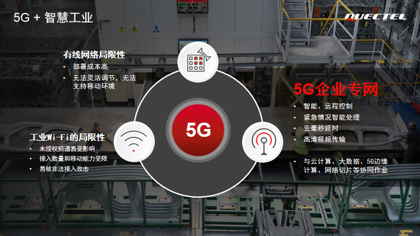 而在应用场景上,5G可以赋能智慧工业,实现智能工厂、智能制造等应用。同时5G可以满足更多环境下的媒体传播,如通过采用移远通信5G模组进行无线传输的TUV ONE,可以在户外实现实时1080P或4K HDR超高清视频直播。