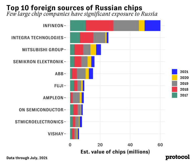 俄罗斯前十大进口芯片国家(图源:protocol)