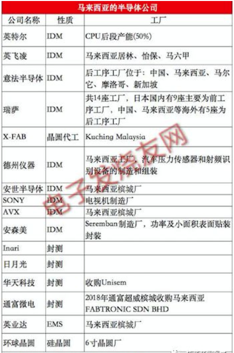 那么,马来西亚可以给俄罗斯哪些半导体产业上的支持呢?从马来西亚自身的半导体产业来看,马来西亚主要的半导体公司分别是集成器件制造商和晶圆代工厂,另外还有IC设计公司、封测企业,现已发展成全球封装测试的主要中心之一。在出口方面,马来西亚是全球第七大电子产品出口国,年出口额可达87亿美元。