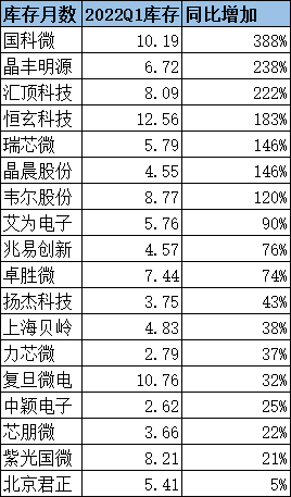 那么有没有可能是因为晶圆代工产能不足,而导致芯片设计企业缺少芯片可卖,而导致的营收增速下滑呢,显然不是,因为2022Q1还有一个很异常的现象是,很多芯片设计企业的库存水位都高于去年同期。