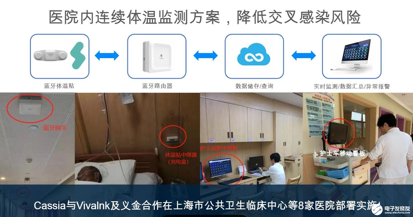 赵福勇介绍蓝牙物联网在数字医院的应用。飞利浦在几年前做了一个测试心率和呼吸频率的蓝牙可穿戴设备,在医院里面采用桂花网提供的蓝牙网关和蓝牙物联网系统,实时把心跳和呼吸频率的数据上传到平台,这套系统去年在欧美的医院部署,提升医生、患者的医护质量,减少护士到病房去量心率、呼吸频率的次数。这也降低了交叉感染的风险。