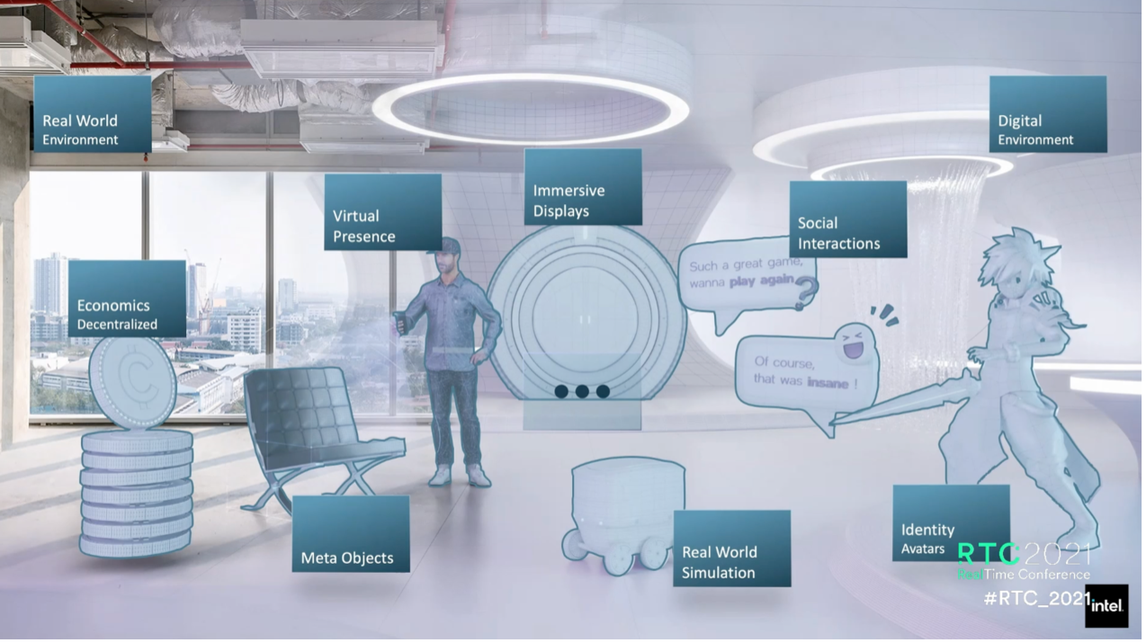 半导体大厂也已经做好冲击GPU市场的准备了,这就是英特尔。英特尔在近日举办的RealTime大会上首次公开讨论了元宇宙,并发表了英特尔对元宇宙的愿景。