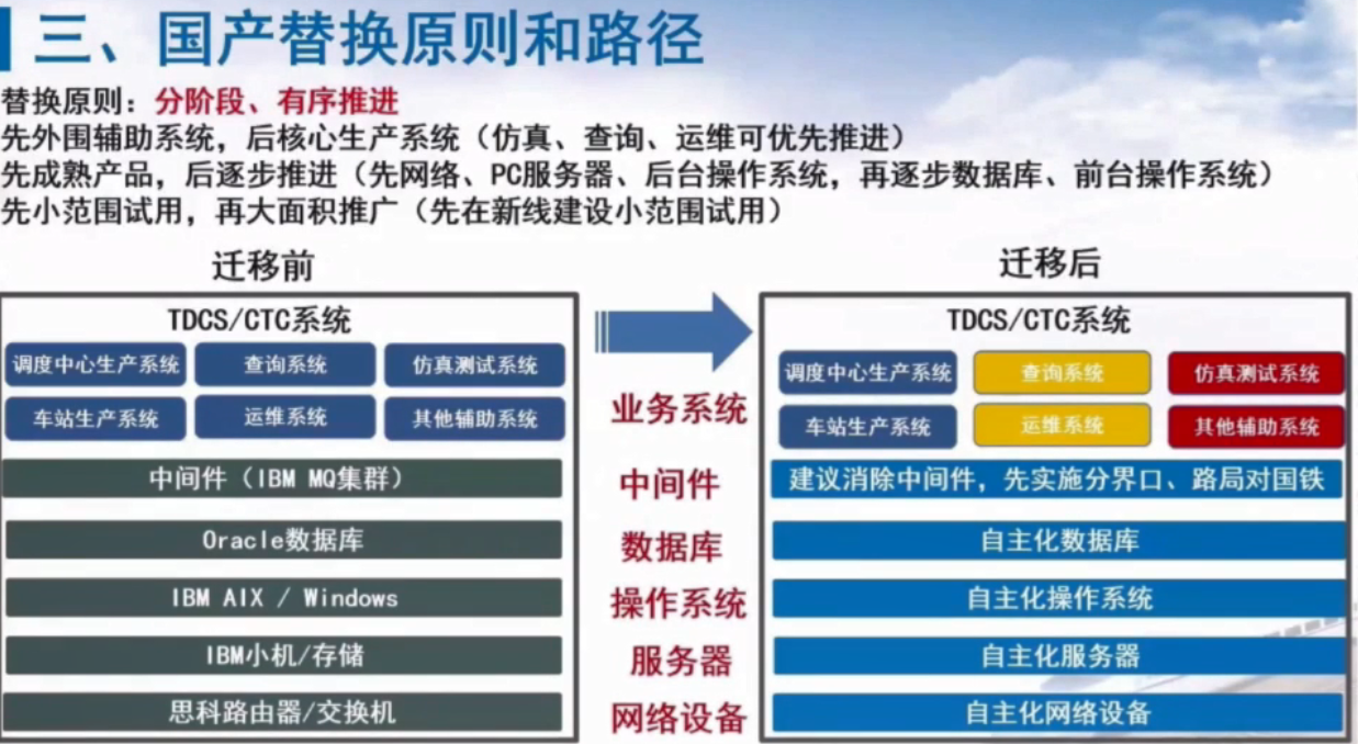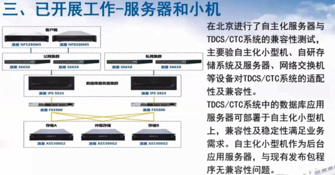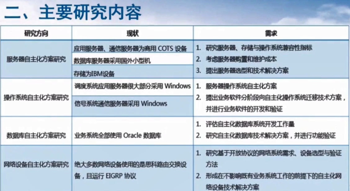 ●与硬件厂家进行了服务器设备替换方面的交流,提出了在数据库硬件设备_上采用PC服务器+存储的替代方案,数据库软件方面自主化的数据库软件。