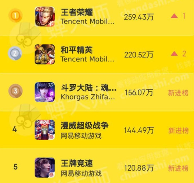 下载量达到了惊人的8.4亿。且根据移动应用数据服务商蝉大师发布的7月手游排行榜,目前《王者荣耀》的下载量依然能够达到每月259.43万,排在手游下载榜的第一位。