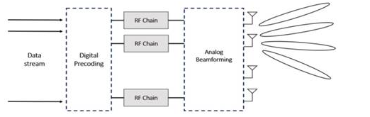 如今,全毫米波数字波束形成的两个重要问题是基带处理器的成本和电力需求。为了减少这些担忧,必须用低分辨率的转换器实现全毫米波数字波束形成,以保持前端的功耗在一个可管理的水平下。因此,从全数字方法所期望的空间多路复用增益只能以不可接受的信号退化代价来实现。