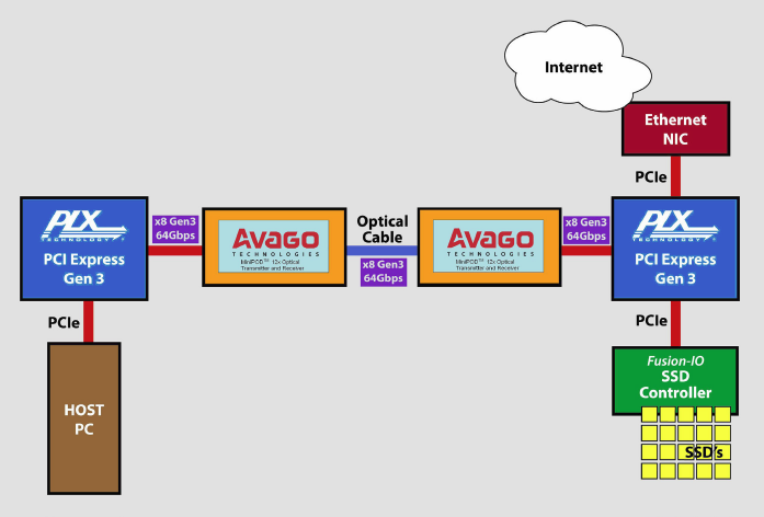 光纤技术为高通道数PCIe Gen3互连提供了替代解决方案,具有增加的链接距离,更小的尺寸/重量,更高的性能和更具竞争力的价格的价值主张。PCIe IC解决方案的行业领导者PLX Technology和并行光纤产品的行业领导者Avago Technologies最近合作进行了一次演示,展示了第一条PCI Express Gen3端到端光纤链路,可提供完整的64Gbps(128Gbps) PCIe应用程序的双向性能)。