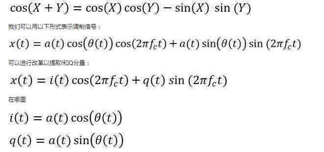 通过以下等式,调制信号的幅度和相位与I和Q分量相关: