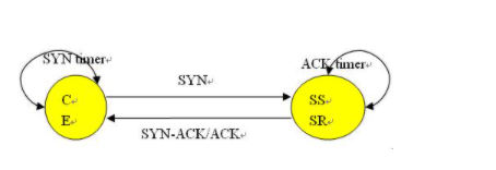 其中 C-》CLOSED , SS-》SYN_SENT , SR-》SYN_RCVD , E-》ESTABLISHED 为节点可能处于的状态在发送或接受 SYN 和发送 SYN-ACK 接受 ACK 后的变化,而两个 timer 的作用就是使得没有正确到底目的地的数据包可以被重新发送,当然这些 timer 需要在适当的时机取消比如: ack_timer-》cancel() ,取消 timer 使用 cancel 函数即可。具体代码实现参考 0.2 版本的代码。那么现在我们重新 make 编译我们的程序,我们会发现两个节点可以通过三次握手建立起来一个简单的链接了,可以说我们在有这个简单的可以建立连接的程序之后我们马上想到是不是还可以发送数据呢,在 ns2 中,数据的发送,我们常见的如 CBR 或者 FTP ,都可以发送数据但是他们之间有很大的不同 CBR 使用的是 trafficgenerater ,而 FTP 可以看成是一个带发送数据包的 agent ,现在为了让我们的 simple_trans 协议可以在建立起连接以后发送数据,我们就有了两种选择,是继承 trafficgenerater 成为数据发送源呢,还是类似 FTP 使用 agent 发送数据,考虑到我们协议的简洁易懂性,我们直接使用一个 timer ,在每次 timer 到时的时候都利用 simple_trans 的 send 函数发送一个具有 PROTOCOL_DATA 类型(标识是一个数据)的包给通信对端( CN )。在 sendmsg 函数中的实现如下: