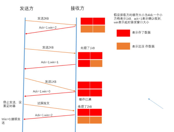 发送方收到之后,便会调整自己的发送速率,也就是调整自己发送窗口的大小,当发送方收到接收窗口的大小为0时,发送方就会停止发送数据,防止出现大量丢包情况的发生。