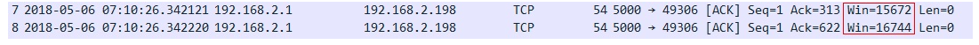 图一为通过Wireshark抓包192.168.2.1和192.168.2.198的交互截图,可以看到有个标记Win,这个标记的含义就是接收端告诉发送端自己还有多少缓冲区可以接收数据。于是发送端就可以根据这个接收端的处理能力来发送数据,而不会导致接收端处理不过来。