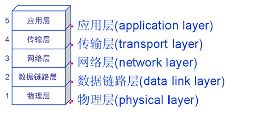 网络上的计算机之所以可以互相通信,是因为它们之间都遵守互相都可以“认识”的互联网协议(就如同人交流一样,两个人能够交流,互相必须知道对象的语言),互联网上的计算机互相通信又归根于网络中层与层之间的通信,OSI模型把网络通信分成七层:物理层、数据链路层、网络层、传输层、会话层、表示层和应用层,对于开发网络应用人员来说,一般把网络分成五层,这样比较容易理解。这五层为:物理层、数据链路层、网络层、传输层和应用层(最顶层),下面是一张网络分层的图片(来源于网络):