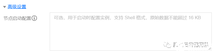 添加节点时,可在云服务器配置界面的“高级设置”中通过自定义数据配置节点启动脚本 (可用于修改组件启动参数、内核参数等):