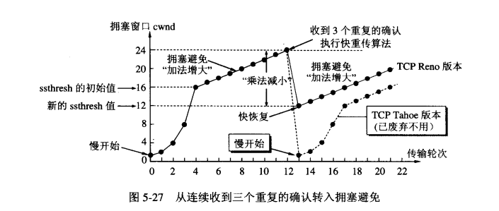 *3. cwnd = ssthresh,既可以使用慢开始算法,也可以使用拥塞避免算法;