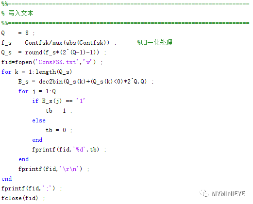 编写测试文件,环路滤波器输出的数据即为FSK解调信号,然后通过抽样判决,位同步时钟提取,即可得到二进制码元,把解调的数据写入到本地,用于数据比对。