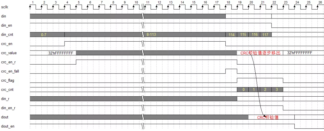 (1)CRC校验初始值和空闲值都设置为 32‘hffffffff,即全 1 状态。