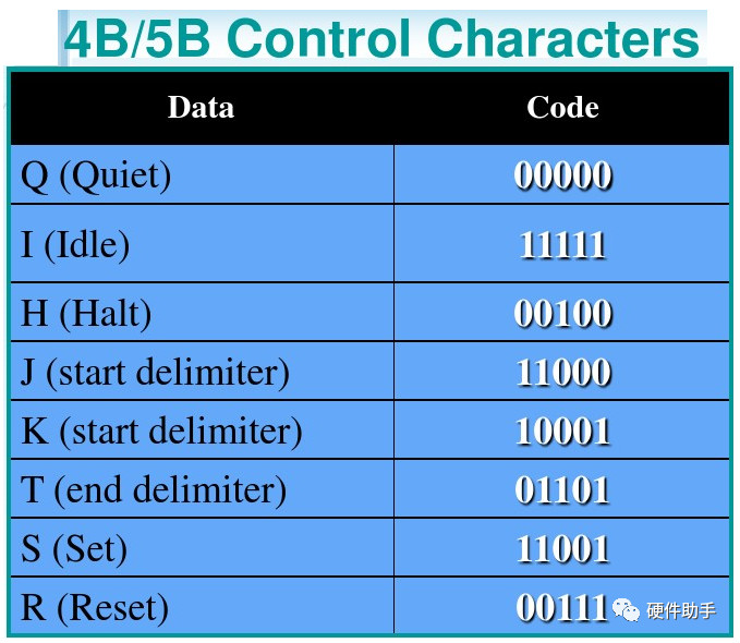 4b/5b编码确保无论4比特符号为何种组合(包括全“0”),其对应的5比特编码中至少有2位“1”,从而保证所传输的这组信号中至少发生两次跳变,以利于接收端的时钟提取。