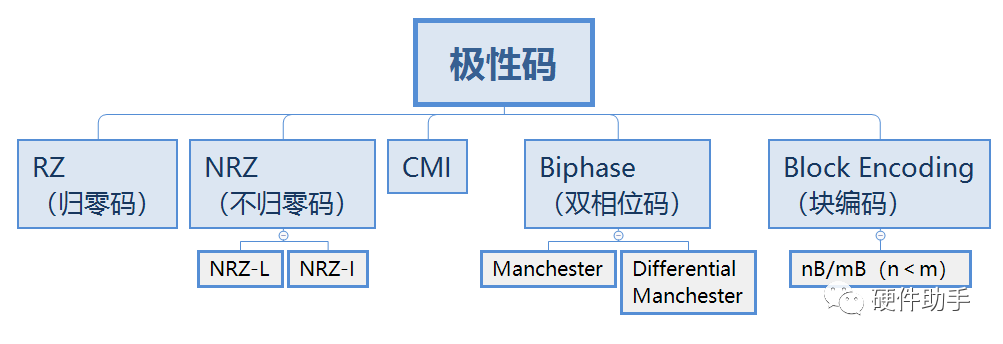 极性码采用两个电压值编码:正电平代表一种信号逻辑状态,负电平代表另一种状态。极性码包括:归零码、不归零码、双相位码、块编码等。下面就进行详细介绍。