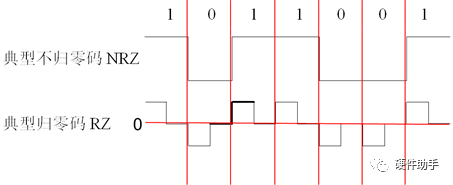 信号变化不是发生在比特之间而是发生在每个比特内。在每个比特间隙的中段,信号将归零。比特“1”实际上是用正电平跳变到零表示,比特“0”则用负电平跳变到零表示,而不是仅仅通过电平的正负来表示。在每个比特内产生信号变化可以解决同步问题。但这种编码方案中每比特需要两次信号变化,从而占用了更多的带宽。